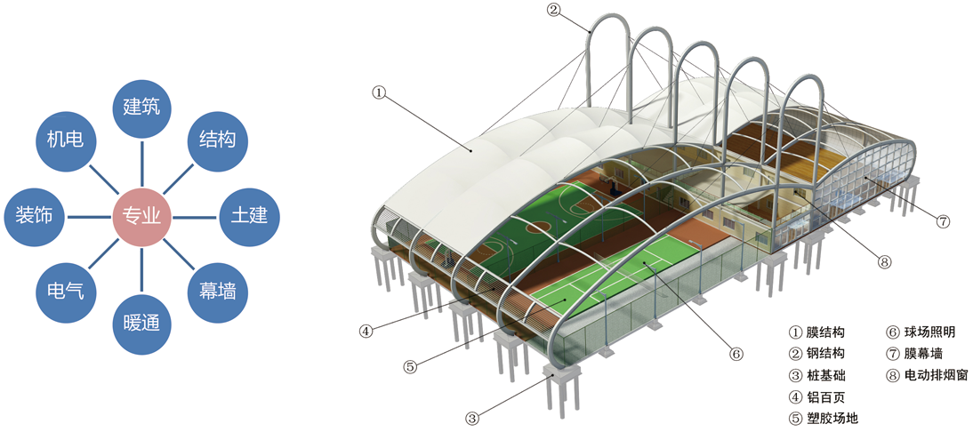 合理的裁剪设计,不但影响膜面的美观同时还决定了膜材的用量;根据所选膜材的幅宽将不可展开的曲面分割成小块,来满足设计的需求!