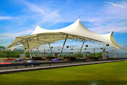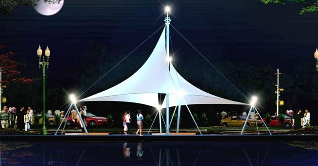 1.雕塑感:舞台张拉膜结构的独特曲面外形使其具有强烈的雕塑感。膜面通过张力达到自平衡。负高斯膜面高低起伏具有的平衡感使体型较大的结构看上去像摆脱了重力的束缚般轻盈地飘浮于天地之间。无论室内还是室外这种雕塑般的质感都令人激动。