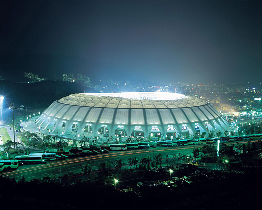 我国膜结构建筑虽然起步较晚,但是发展速度非常快。从1995年开始,只建造了一个面积为3300平方米 的膜结构,1997年前国内只有少量小型和中型的膜结构建筑;1997年上海举办第八届全运会,其主体育场的看台挑篷采用膜结构,挑篷面积达到3.6万平方米,可同时容纳8万名观众。